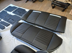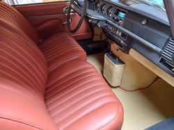 ![]() Sièges simca arianeLes banquettes de cette Ariane ont été refait en beige pour aller au mieux avec les accessoires déjà existants de la voiture. | ![]() Banquette arrièreA l'origine il n'y avait pas ce gabarit ni ces surpiqûres, les propriétaires avaient des photos de ce qu'ils souhaitaient ainsi des modifications ont été réalisées sur les 2 banquettes pour tenter de ressembler au mieux aux photos. |